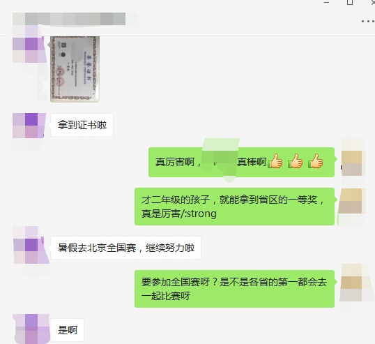 剛剛Mickey的家長給Hellokid的學(xué)習(xí)導(dǎo)師發(fā)來喜訊,我們的Mickey小朋友拿到劍橋杯全國學(xué)生能全歷奇英語國際大賽杭州賽區(qū)第一等級二年級組的一等獎了,晉級全國賽,暑假要去北京比賽了。聽Hellokid的學(xué)習(xí)導(dǎo)師說,Mickey今年上二年級,但是上課的教材基本上已經(jīng)上到級了,發(fā)音特別好,標(biāo)準(zhǔn),流利,聽力也特別棒。