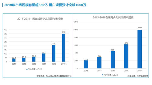學易時代互聯(lián)網(wǎng)教育研究院對外發(fā)布《2019中國在線青少兒英語產(chǎn)業(yè)研究報告》。報告顯示,2018年在線少兒英語市場規(guī)模超210億元,用戶規(guī)模達625多萬人。預(yù)計這一數(shù)據(jù)在2019年將突破1000萬人次。其中,在線1對1市場規(guī)模占比超過五成。預(yù)計2019年市場規(guī)模將達到50億元,用戶規(guī)模超千萬。